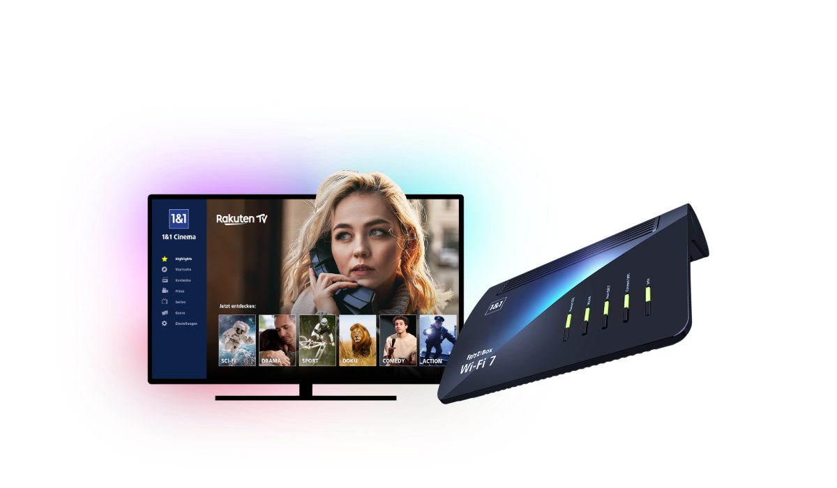 1&1 Cinema nutzen Sie mit Ihrer 1&1 TV-Box auf herkömmlichen Fernsehgeräten oder über die 1&1 TV- und Filme-App auf Ihrem Smartphone, Tablet, Smart-TV oder Amazon Fire TV. Außerdem auch per Webbrowser auf Ihrem Laptop, Tablet oder Smartphone.