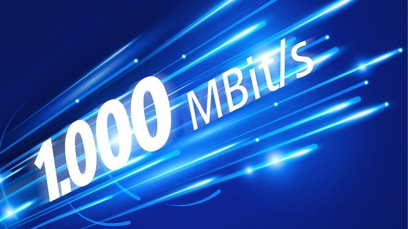 Mit 1&1 Glasfaser erhalten Sie eine Highspeed-Datenübertragung von bis zu 1 GBit/s (1.000 MBit/s). Anders als bei DSL über Kupferkabel, steht Ihnen mit einem Glasfaser-Direktanschluss die gewählte Bandbreite jederzeit zu 100% zur Verfügung, unabhängig vom Nutzerverhalten in Ihrem Wohngebiet.