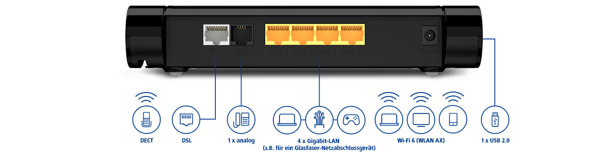 - Unterstützung der zukunftssicheren Super-Vectoring-Technologie für Highspeed-Internet
