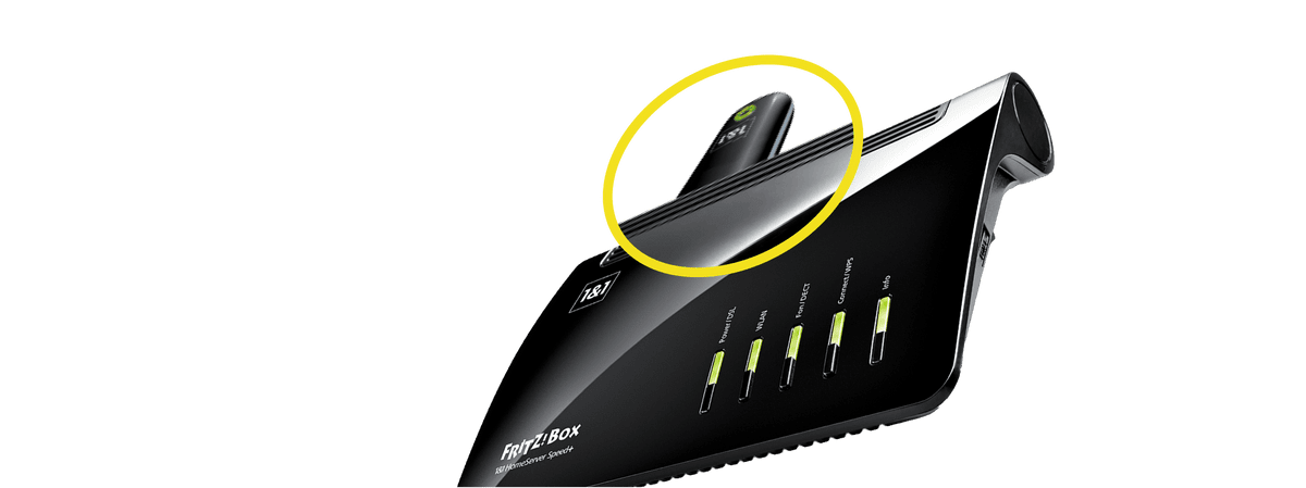 1&1 LTE-Antenne in einen USB-Anschluss des 1&1 HomeServers stecken und 1&1 HomeServer an das Stromnetz anschließen.